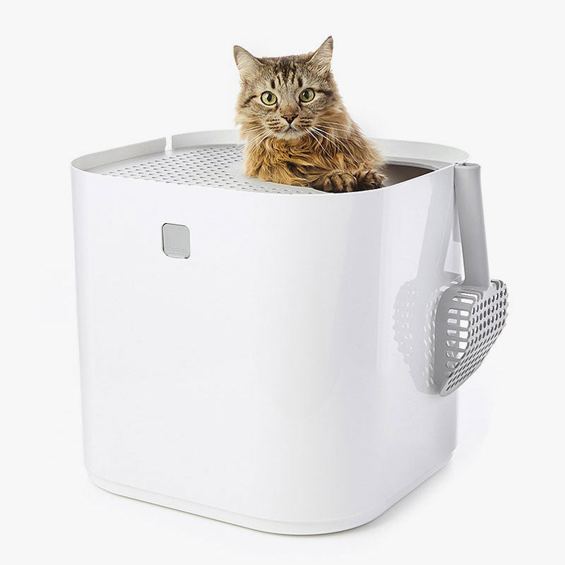 The original top-entry, all-in-one solution that all but eliminates litter tracking. Modkat is a beauty that won't scream “litter box” in your home. Guests may wonder what the shiny white cube in the corner is for.