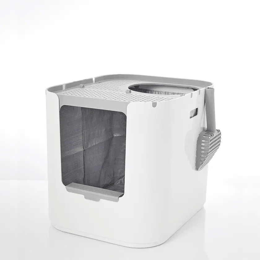 The top-entry configuration will keep your floors practically pebble free! It doesn't matter how vigorously your cats dig or where they aim, the mess will stay inside the box. The lid doubles as a walk-off mat, catching any stray kernels.